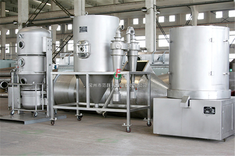 噴霧干燥機組是一種用離心式或壓力式霧化器,將溶液、懸浮液、乳濁液或漿料等料液霧化成細微液滴(表面積顯著增大),經與熱風接觸得以急速干燥(幾秒—到幾十秒),從而直接得到粉末產品的裝置.