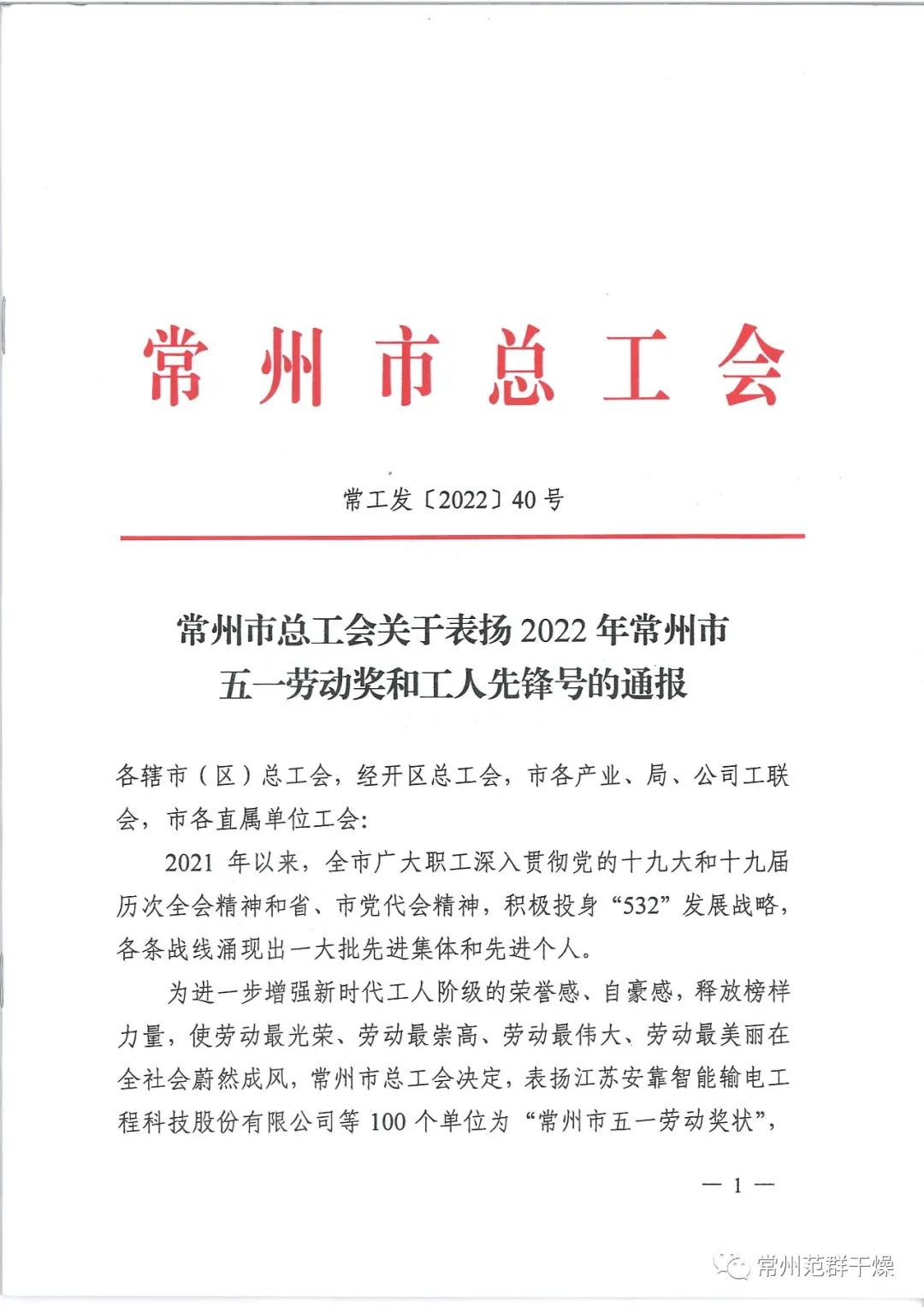“常州市五一勞動(dòng)獎(jiǎng)和工人先鋒號(hào)”是常州市總工會(huì)授予企事業(yè)單位的最高榮譽(yù)。常州范群將化榮譽(yù)為動(dòng)力,以獎(jiǎng)狀為任務(wù),不忘初心、牢記使命,開拓奮進(jìn)、攻堅(jiān)克難,實(shí)現(xiàn)疫情防控和生產(chǎn)經(jīng)營(yíng)“雙戰(zhàn)雙勝”等各項(xiàng)工作。