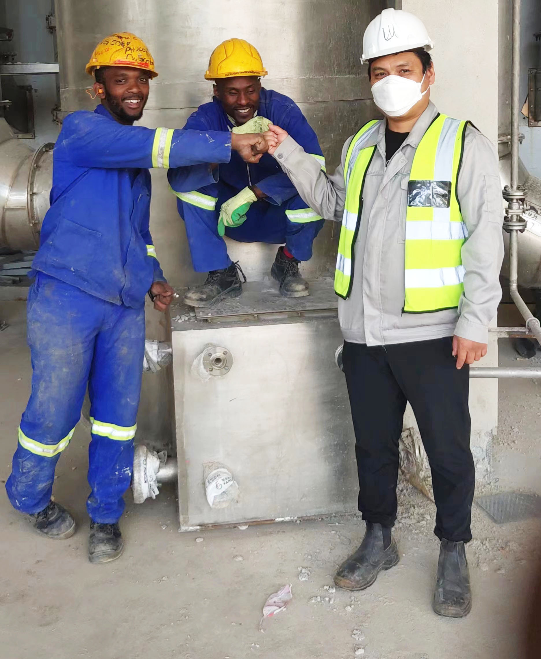 南非德班某項目現(xiàn)場,一張中國面孔穿梭于土建車間。現(xiàn)場還有很多在建設備,塵土漂浮在空中。他時不時地拿出手機,查看中國當?shù)貢r間,因為他要與中國項目經(jīng)理溝通一下項目進度和安裝細節(jié)。距離簽證到期沒有多少時間了,他想盡快把收尾工作做好。雖然能與一群非洲兄弟打成一片,但離家也有段時間了,他就是來自常州市范群干燥設備有限公司的售后人員——路工。