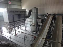 由常州市范群干燥設備有限公司生產的2萬噸/年白碳黑干燥裝置日前在浙江橫店通過驗收,該裝置由燃煤熱風系統、加料系統、閃蒸干燥系統、布袋收塵系統、自動包裝系統等組成。針對白碳黑濾餅含水量高、耐溫高及產品比重小的特點,熱源采用了間接式燃煤熱風爐,熱風溫度高達500℃以上,進料系統采用皮帶輸送和螺旋加料相結合,干燥主機采用直徑2米的閃蒸干燥機,直接配套布袋除塵器收集產品,并由自動包裝機完成產品包裝。整套裝置自動化程度高,在人員配置及噸耗等重要指標達到了設計水平。